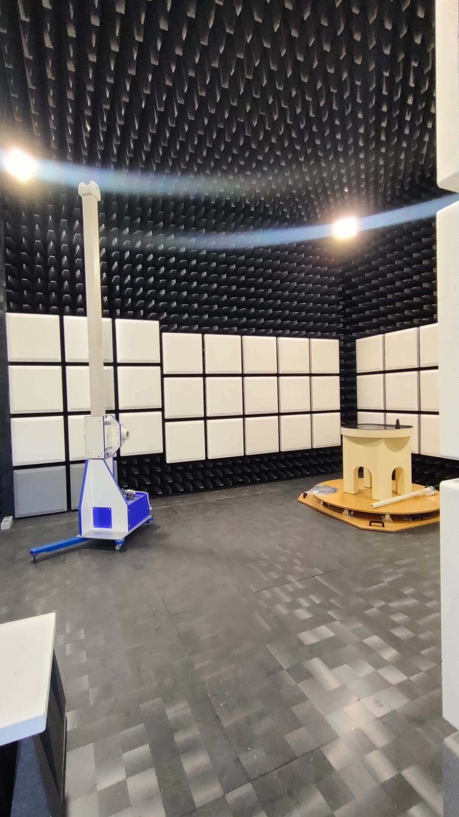Our laboratory’s anechoic chamber is designed to provide a controlled, reflection-free environment essential for accurate electromagnetic measurements.